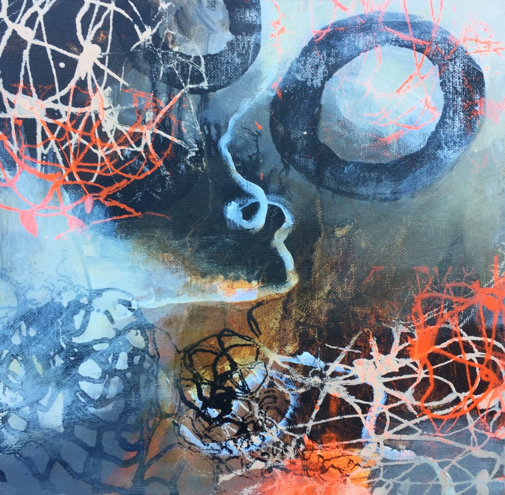 Jeg maler figurativt, abstrakt, arbejder med mixed media mm, og anvender ud over akrylmaling også tusch, kul, kridt, sand, blyant, papir, serigrafi mm.
